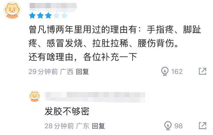 整场比赛打下来,曾凡博在替补22分钟的上场时间里,9中3,三分球7中2,拿到9分2篮板1助攻,球迷在赛后也再度对其进行热议:“现在都不如翟晓川了?你能不能少点营销,认真提高球技啊,以前只会三分和空切,现在三分也没了”、“曾凡博两年里用过的理由有手指疼、脚趾疼、感冒发烧、拉肚拉稀、腰伤背伤”、“竞技体育还是要脚踏实地”。